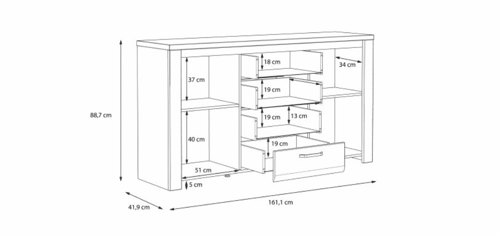 Brugia komoda pasižymi elegantišku ir šiuolaikišku dizainu, kuris puikiai dera prie įvairių interjero stilių. Matinis fasadas suteikia baldui prabangos ir rafinuotumo, o paprastos linijos ir minimalistinis dizainas pabrėžia šiuolaikišką estetiką. Ši komoda yra puikus pasirinkimas tiems, kurie vertina modernų ir funkcionalų interjerą, suteikiantį erdvės tvarkingumui ir stilingumui.