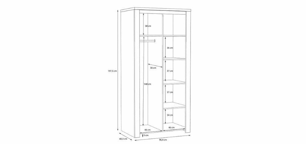 Brugia dviejų durų spinta – tai moderni ir funkcionali erdvė, suteikianti jūsų namams elegancijos ir tvarkos.