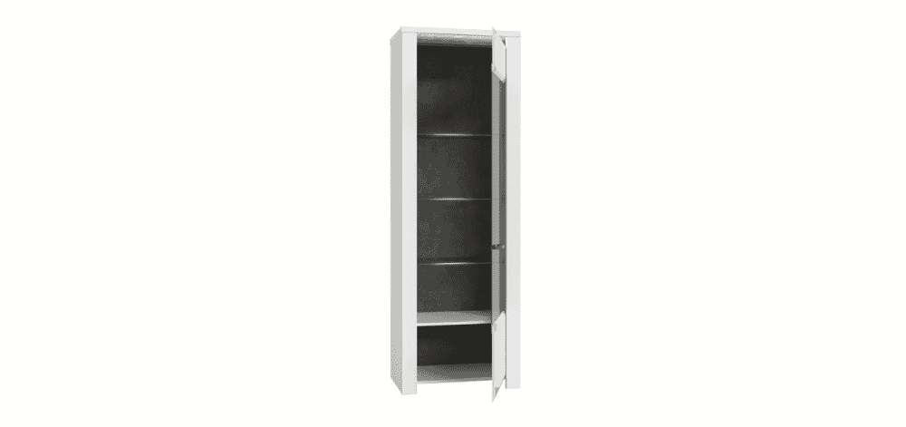 Brugia aukšta vitrina pasižymi elegantišku ir šiuolaikišku dizainu, kuris puikiai dera prie įvairių interjero stilių. Matinis fasadas suteikia baldui prabangos ir rafinuotumo, o paprastos linijos ir minimalistinis dizainas pabrėžia šiuolaikišką estetiką. Ši aukšta vitrina yra puikus pasirinkimas tiems, kurie vertina modernų ir funkcionalų interjerą, suteikiantį erdvės tvarkingumui ir stilingumui.