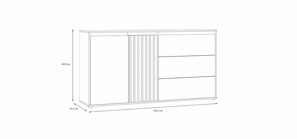 Matmenys: 159,3 cm (plotis) x 41,5 cm (gylis) x 84,9 cm (aukštis),