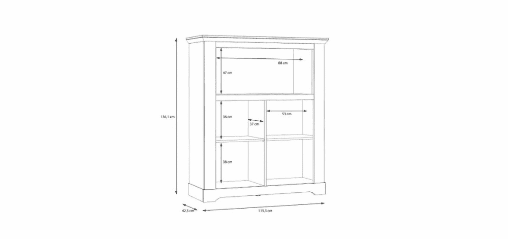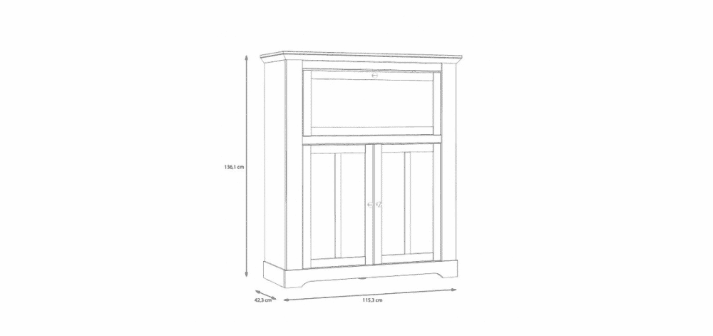 Matmenys: 115,3 cm (plotis) x 44,3 cm (gylis) x 136,1 cm (aukštis),