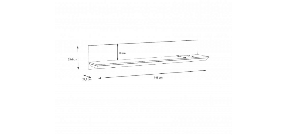 Matmenys: 145 cm (ilgis) x 22,1 cm (gylis) x 25,6 cm (aukštis),