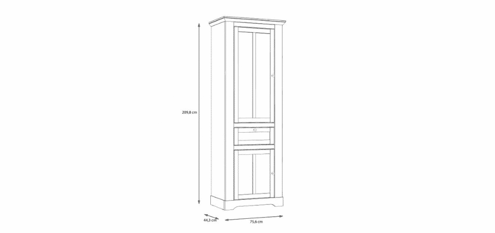 Matmenys: 75,6 cm (plotis) x 44,3 cm (gylis) x 209,8 cm (aukštis),