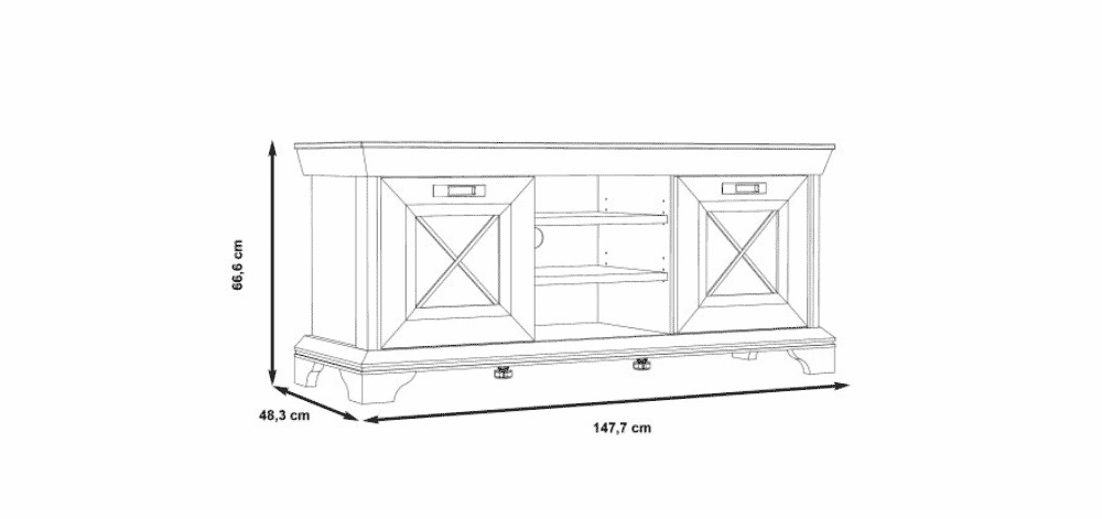 Matmenys: 147,7 cm (plotis) x 48,3 cm (gylis) x 66,6 cm (aukštis),