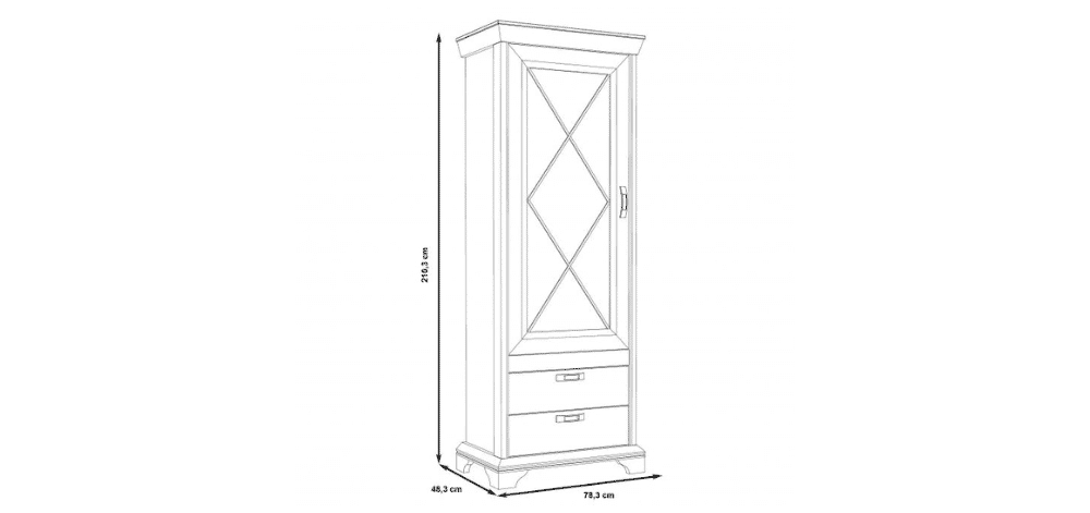 Kashmir aukšta vitrina pasižymi šiuolaikiniu ir elegantiškų dizainu, kuris puikiai pritaikomas prie modernių ir minimalistinių interjerų. Subtilios linijos ir švelnus dizainas suteikia baldui rafinuotumo ir lengvumo, pabrėžiant jo universalumą. Ši aukšta vitrina yra puikus pasirinkimas tiems, kurie vertina modernų stilių, praktiškumą ir erdvės efektyvumą.