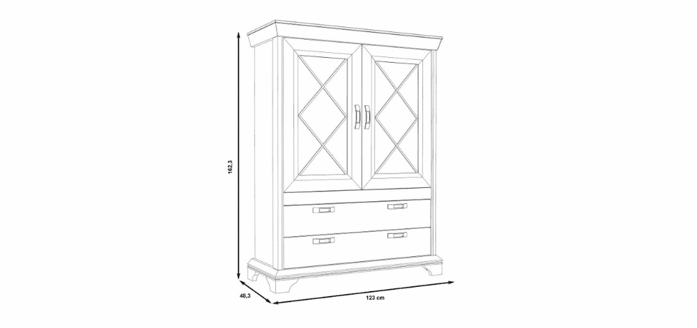Matmenys: 123 cm (plotis) x 48,3 cm (gylis) x 162,3 cm (aukštis),