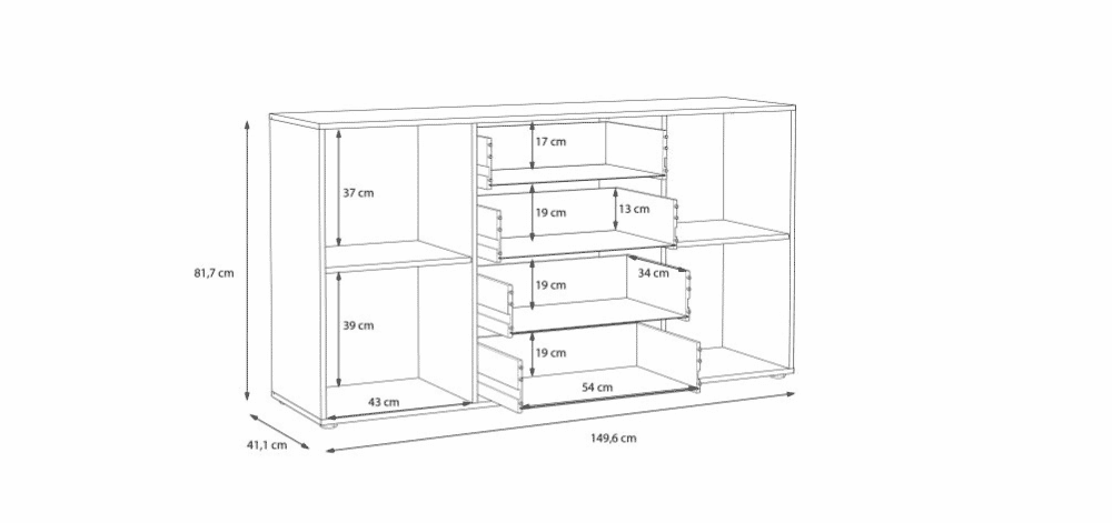 • Matmenys: 149,6 cm (plotis) x 41,1 cm (gylis) x 81,7 cm (aukštis),