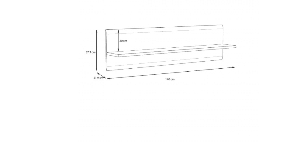 Matmenys: 140 cm (plotis) x 21,9 cm (gylis) x 37,3 cm (aukštis),