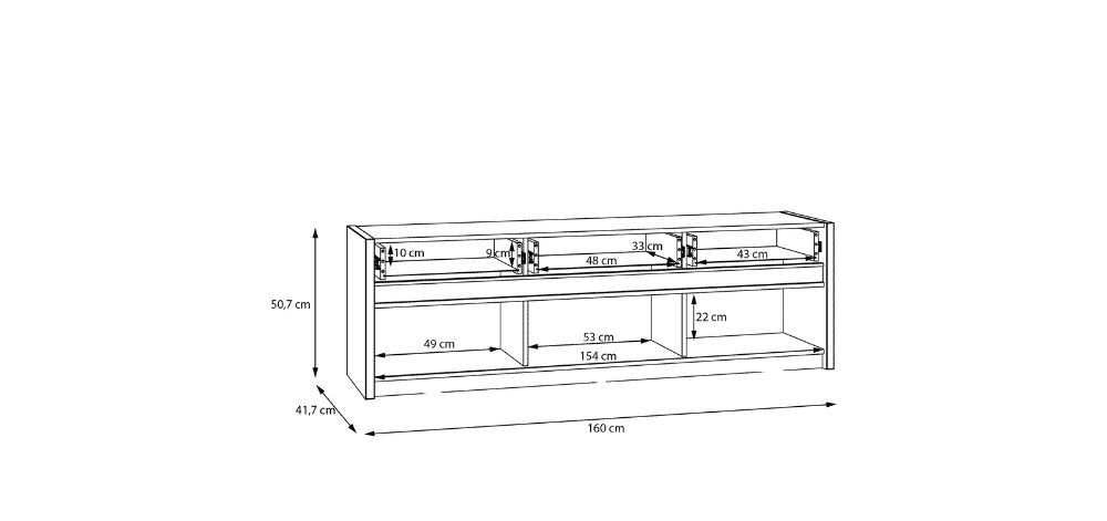 Matmenys: 160 cm (plotis) x 41,7 cm (gylis) x 50,7 cm (aukštis),