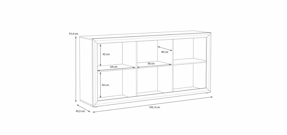 Matmenys: 193,4 cm (plotis) x 43,5 cm (gylis) x 91,4 cm (aukštis),