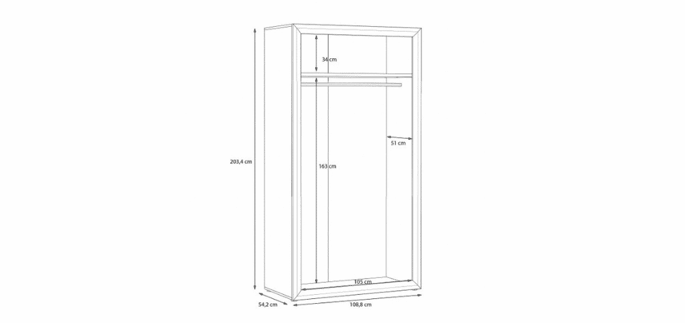 Matmenys: 108,8 cm (plotis) x 54,2 cm (gylis) x 203,4 cm (aukštis),