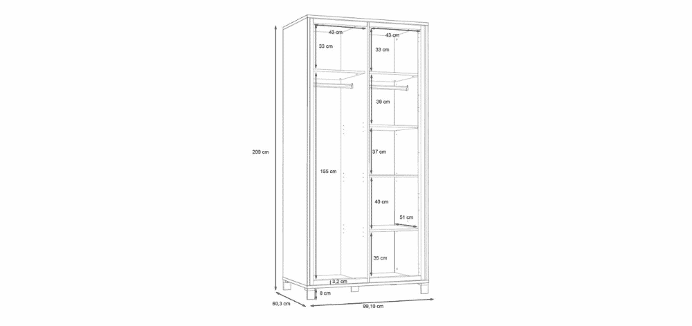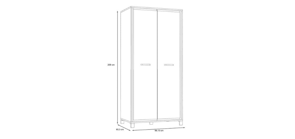 Matmenys: 99,1 cm (plotis) x 60,3 cm (gylis) x 209 cm (aukštis),