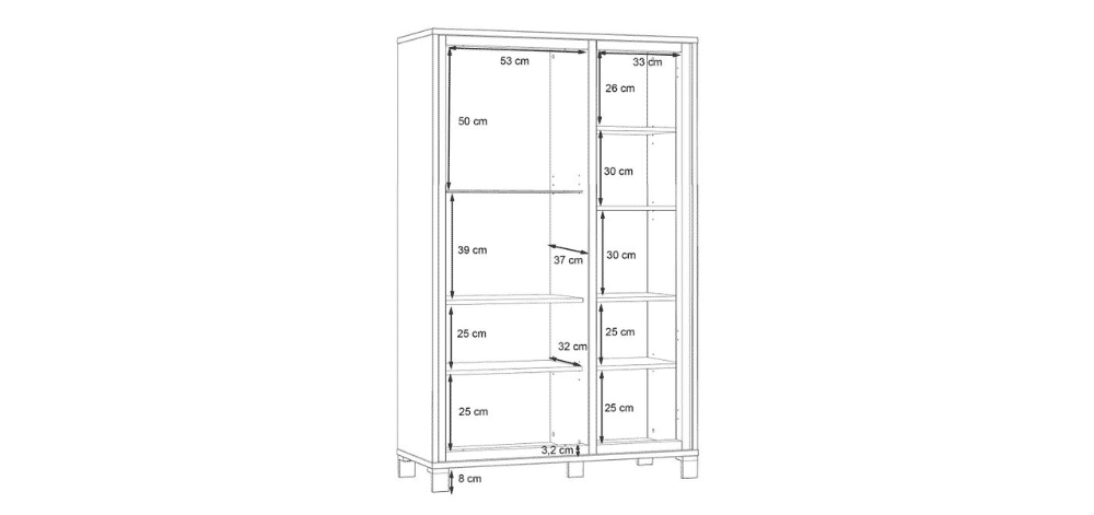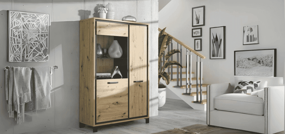 Funkcionalumas: Kompaktiška konstrukcija suteikia pakankamai vietos daiktų eksponavimui ir laikymui,