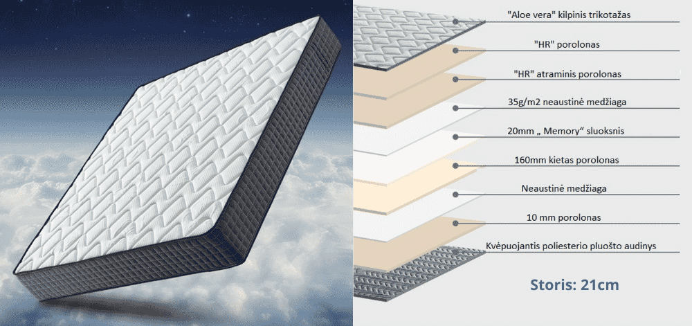 - Komfortas: Kietas čiužinys užtikrina optimalų miego komfortą, tvirtesnę atramą,