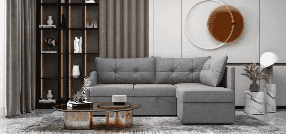 - Jums pageidaujant, kampo nugarą yra aptraukta audiniu, todėl baldą galima statyti atviroje erdvėje;