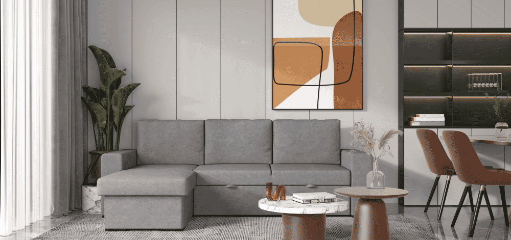 - Nugara aptraukta audiniu, todėl baldą galima statyti atviroje erdvėje.