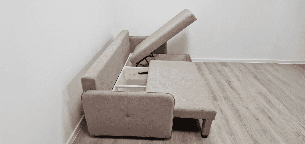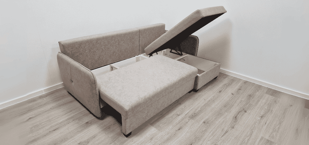 - Nugara aptraukta audiniu, todėl baldą galima statyti atviroje erdvėje.