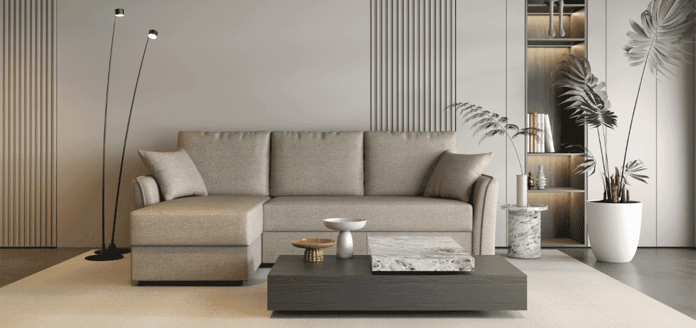 - Nugara aptraukta audiniu, todėl baldą galima statyti atviroje erdvėje.