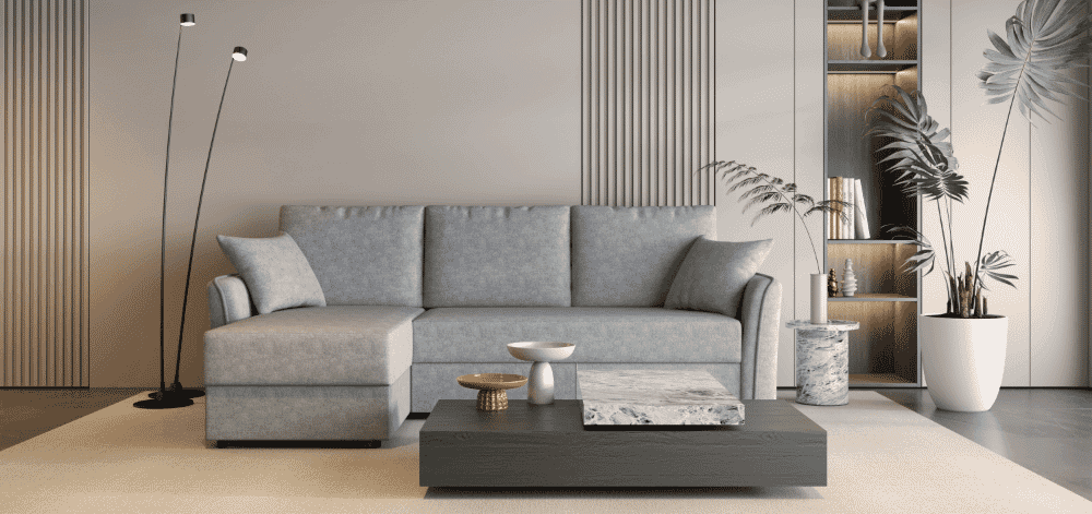 - Nugara aptraukta audiniu, todėl baldą galima statyti atviroje erdvėje.