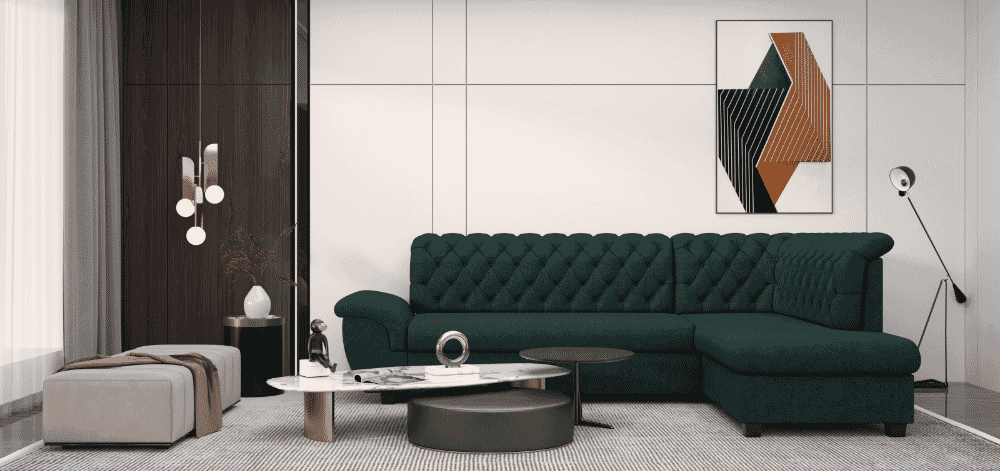 - Nugara aptraukta audiniu, todėl baldą galima statyti atviroje erdvėje;