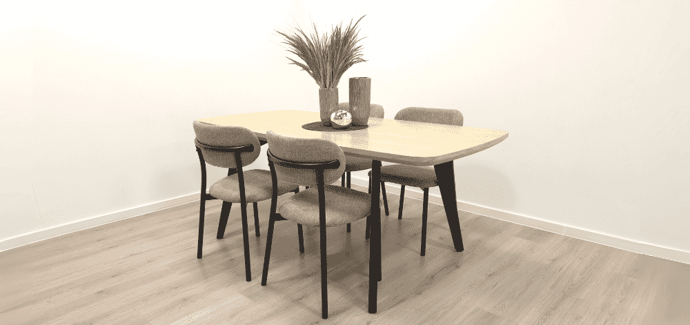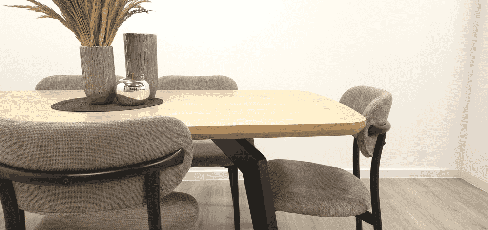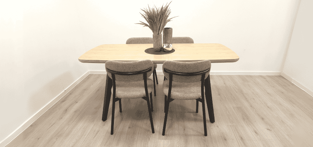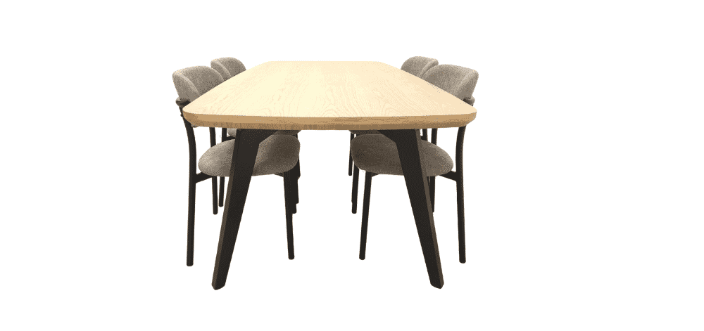 Stalas 23C12 – tai tvirtas ir modernus valgomojo stalas, sukurtas ilgam naudojimui. Natūralios medžio spalvos stalviršis suteikia jaukumo ir šilumos pojūtį, o juodos metalinės kojos suteikia stabilumo bei išskirtinio industrinio stiliaus akcentą. Šis modelis yra nereguliuojamas, todėl užtikrina paprastumą ir patikimumą.