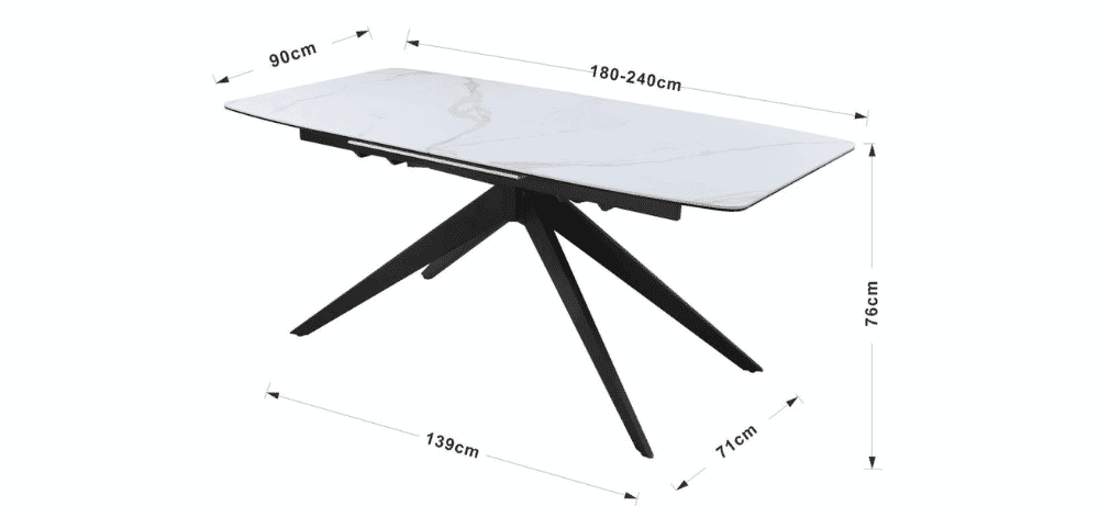 - Matmenys: 180/240 cm (ilgis) x 89 cm (plotis) x 77 cm (aukštis),
