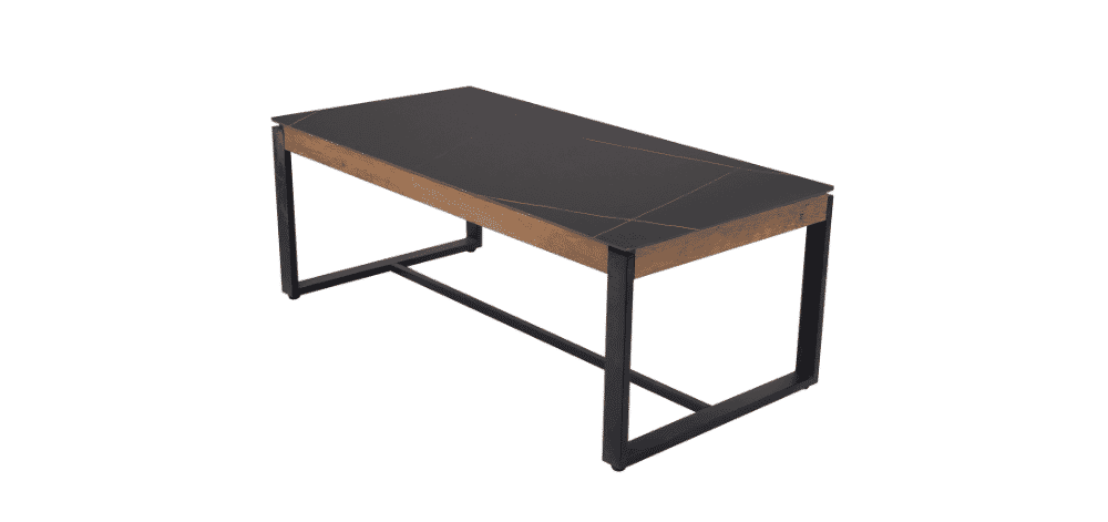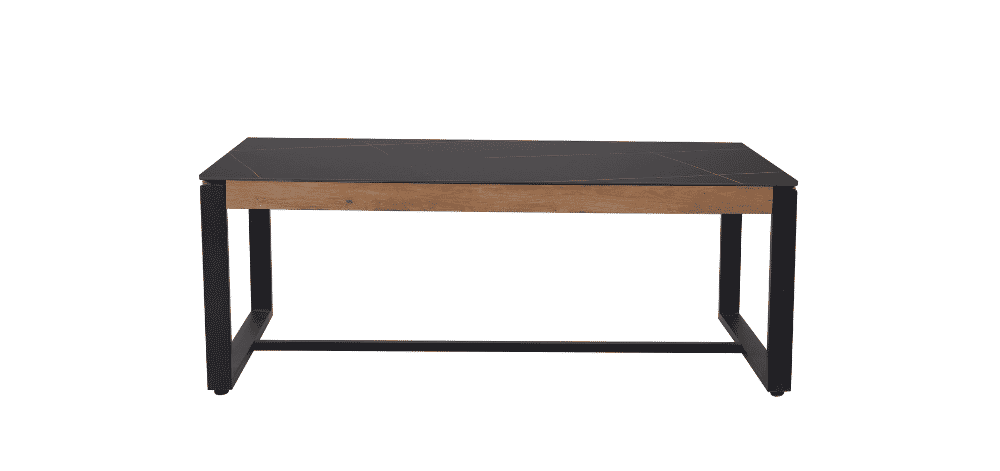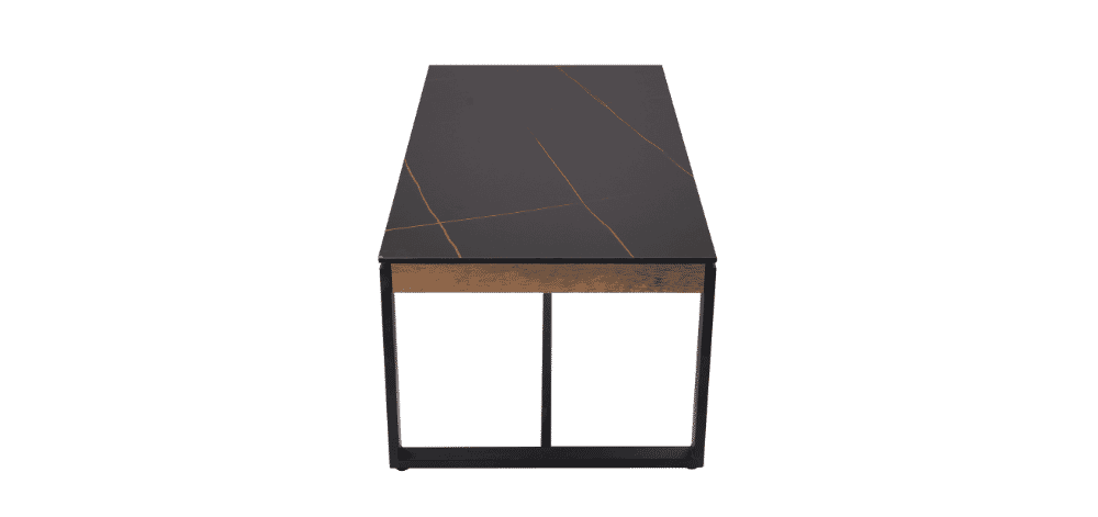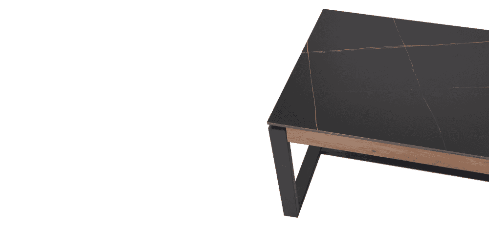 Kavos staliukas NOOK – šiuolaikiško dizaino baldas, išsiskiriantis elegantišku kontrastu tarp tamsios keramikinės stalviršio dangos ir juodo metalo kojų. Stalo viršus pagamintas iš 12 mm keramikos, todėl jis ne tik atrodo prabangiai, bet ir yra atsparus karščiui, įbrėžimams bei kasdieniam naudojimui. Natūralaus medžio imitacijos detalės suteikia jaukumo, išlaikant industrinį charakterį.